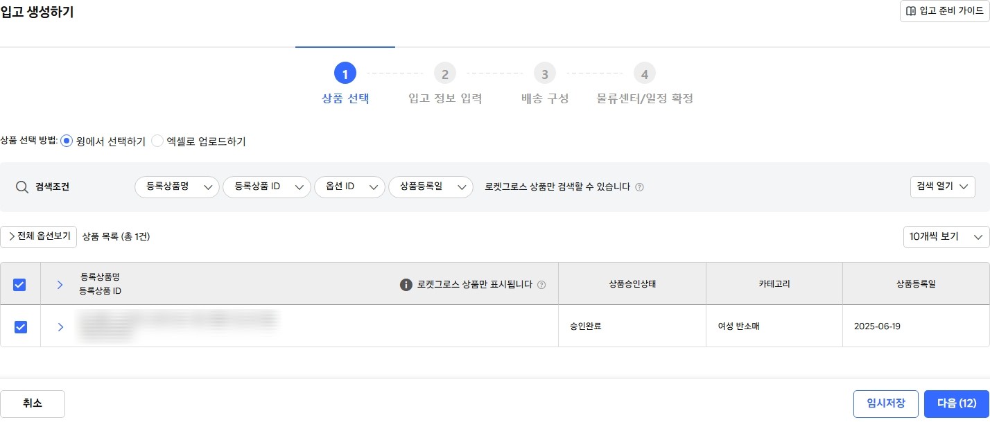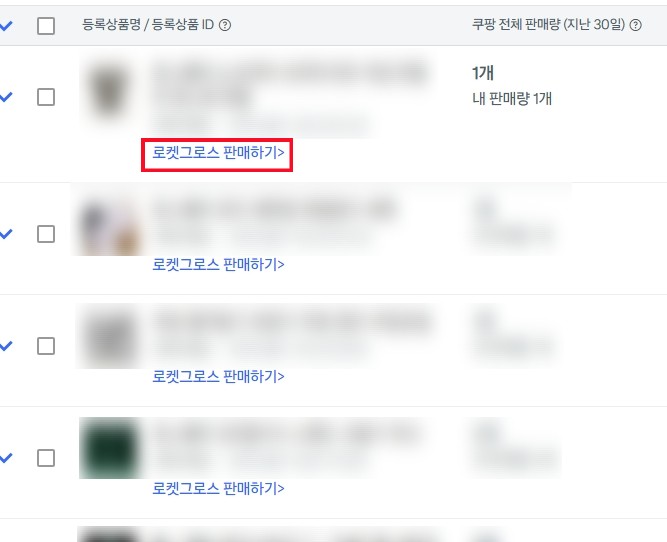 상품 목록에서 로켓그로스 입고를 원하는 상품을 로켓그로스 판매하기로 정보를 추가해주면 됩니다.