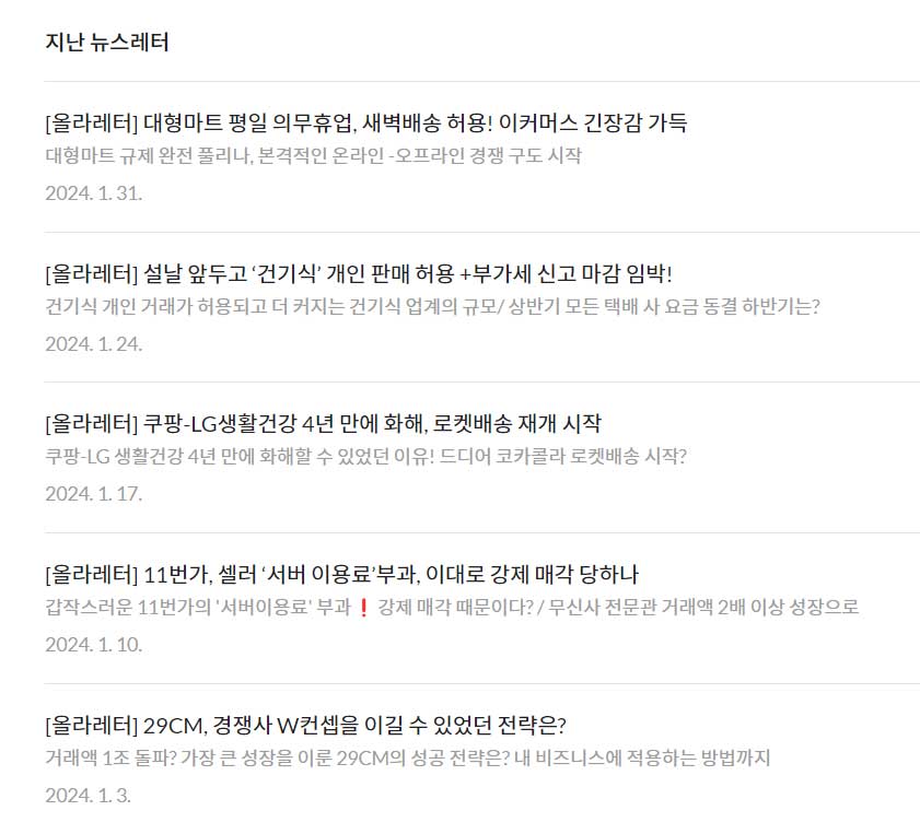 매주 수요일, 중요한 이커머스 뉴스만 쏙쏙 보여드리는 올라레터