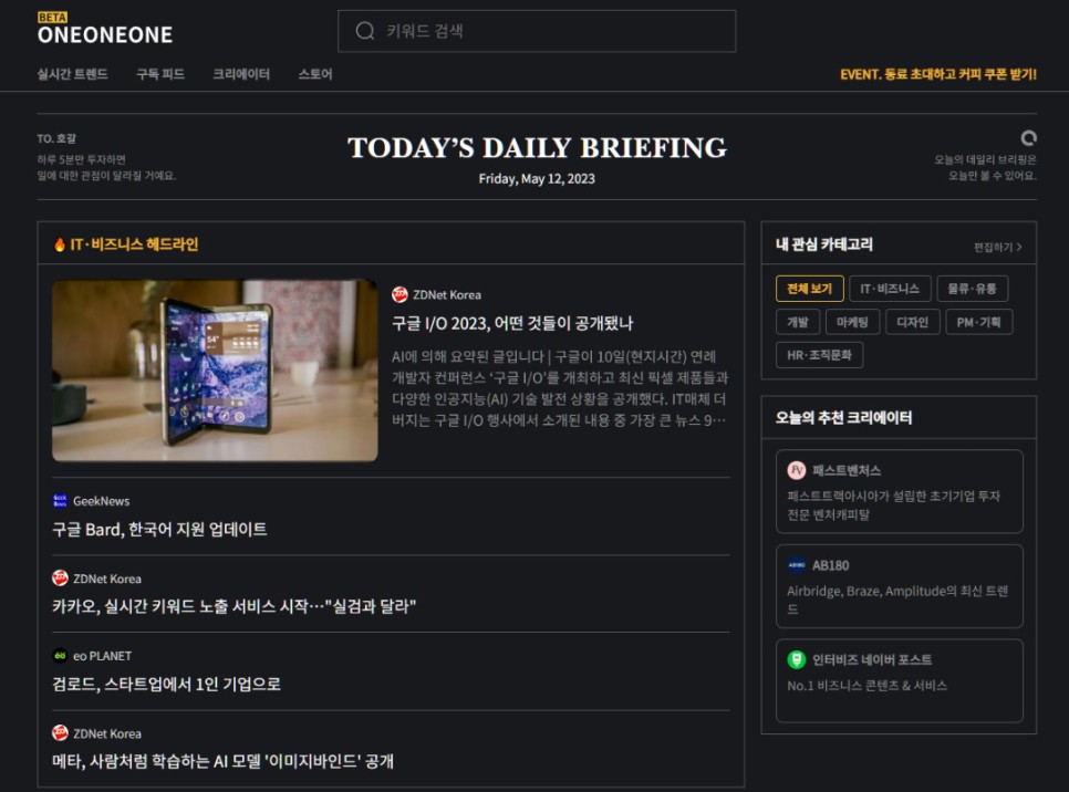 보기 편하게 분류해서 발송해 주는 뉴스레터인데요.
