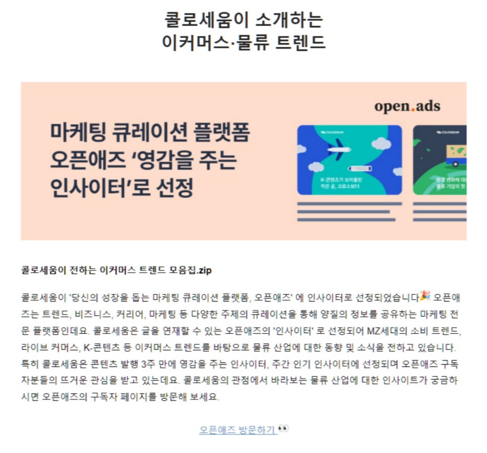 풀필먼트 서비스를 제공하고있는 콜로세움에서 발행하는 뉴스레터인 만큼