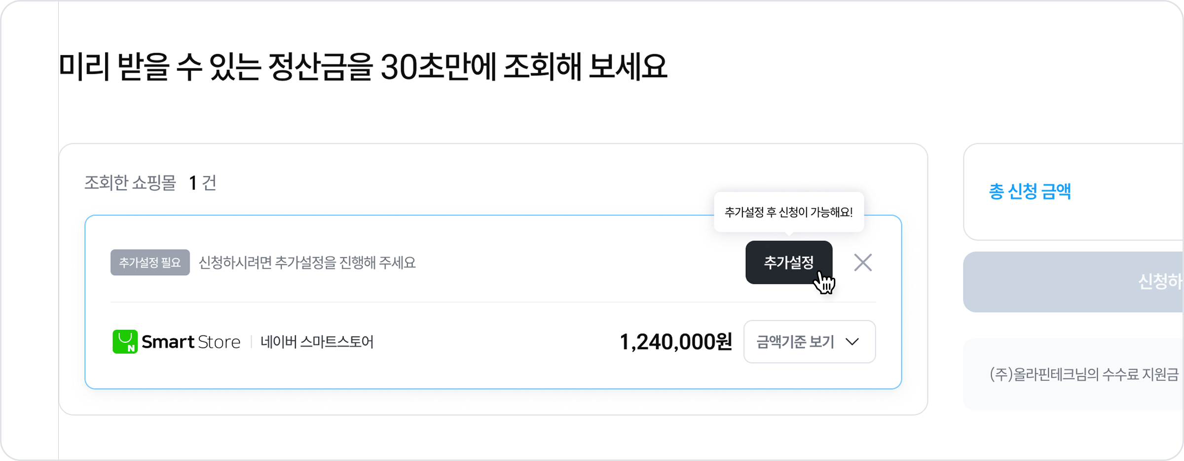 안녕하세요, 초간편 통합선정산 서비스 올라입니다.